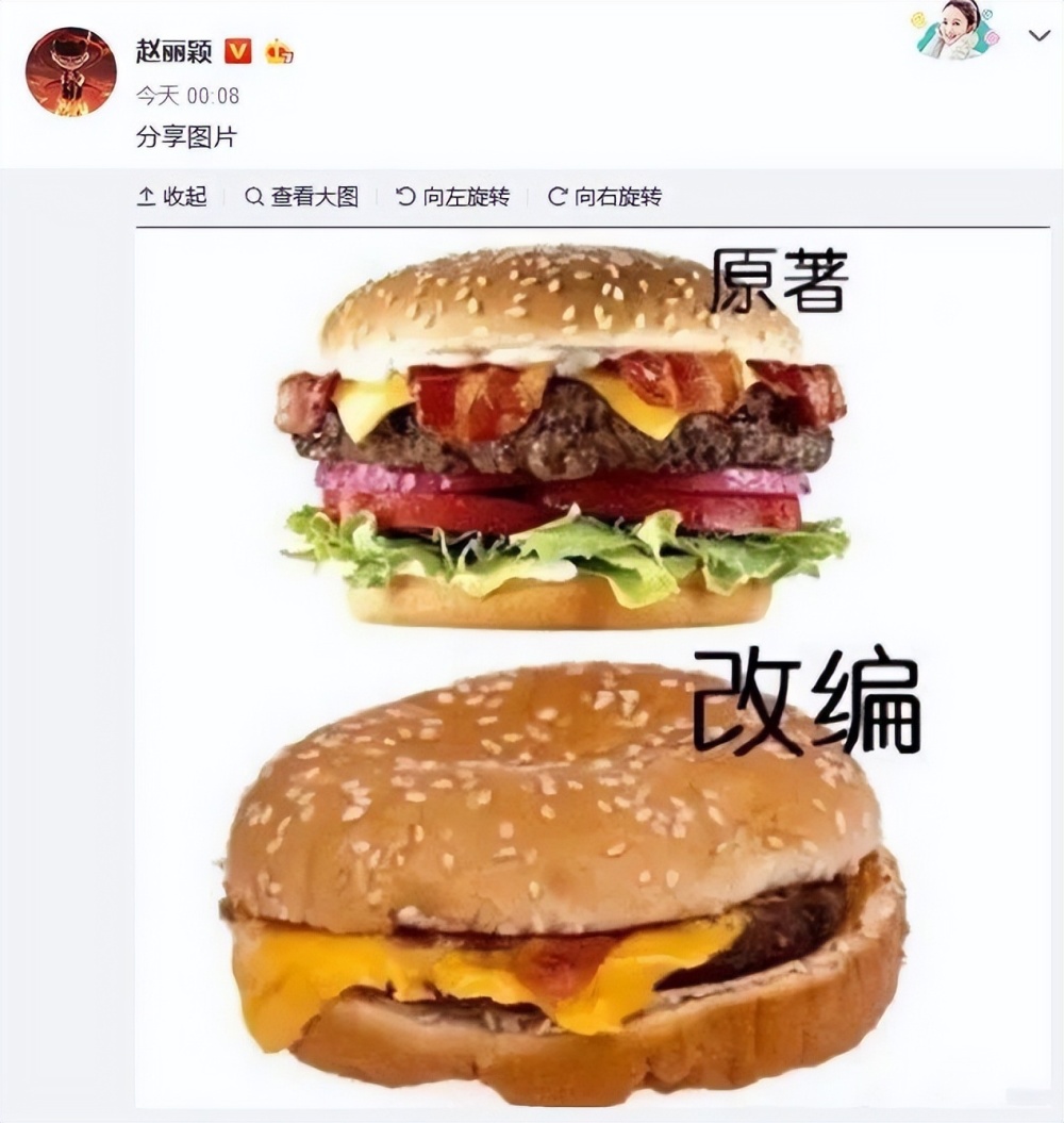 比如赵丽颖拍摄《有匪》时,就亲自下场用一张汉堡图内涵剧组乱改剧本,而当剧播出后,大家才知道原来赵丽颖所说的魔改,是给配角们大量的加戏。