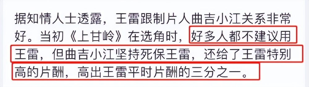 博主也给出了解释,他说一开始大家反对王雷来参演,但因为制片人和王雷关系不错,不仅力排众议,甚至还加价请来了王雷。