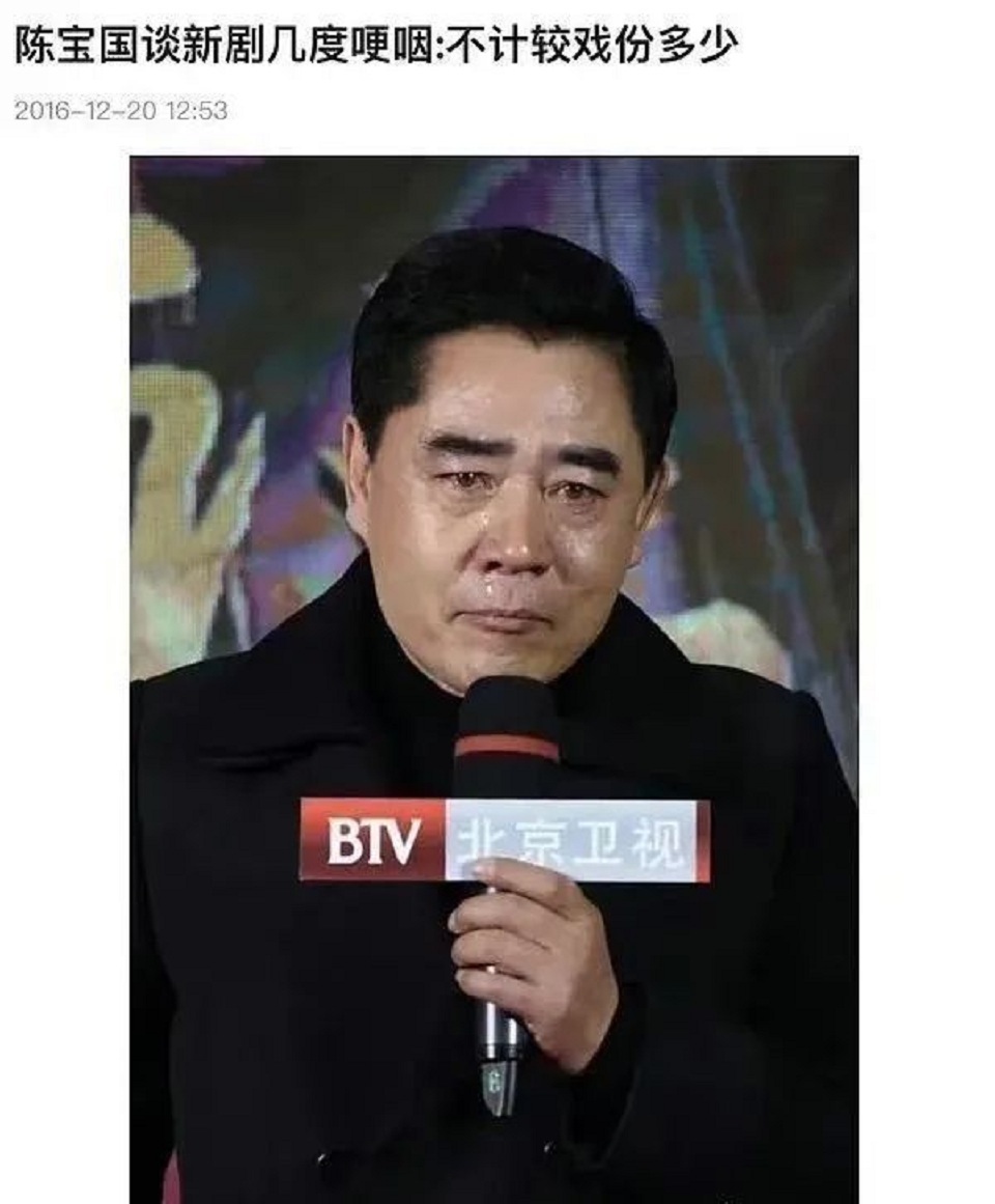 而在被问到新剧的戏份时,陈宝国嘴里说的是:“不计较戏份多少。”但却当着镜头滚下两行热泪,显然是受了不少委屈。