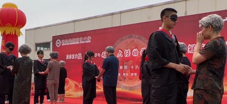 家长称,学校老师希望用这种方式让孩子懂得感恩,激励他们更加努力学习。
