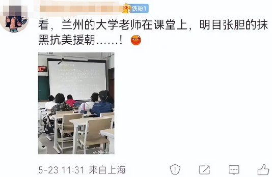 5月23日上午,有网友爆料兰州大学的课堂上出现了历史虚无主义的内容,还附上老师上课使用的PPT,讨伐其“明目张胆地抹黑抗美援朝”。