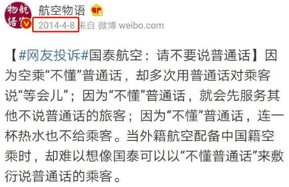 讲道理,这不是国泰航空第一次被爆料空乘不尊重普通话乘客。