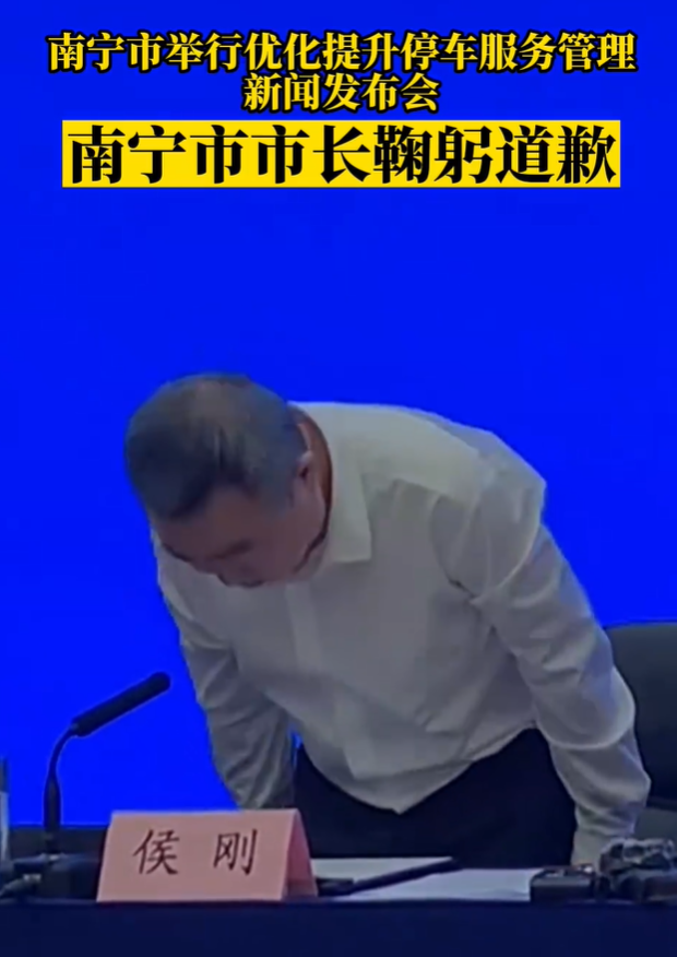 5月23日下午,官方就此事召开新闻发布会,南宁市长侯刚表示是政府工作做得不到位,这些天深感不安,在这里代表市政府,向广大市民朋友表示深刻检讨,并鞠躬道歉。
