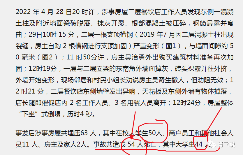 湖南楼坍塌的事故诸位都听说了吧?4秒钟,楼整体倒塌,事故造成54人死亡,其中在校大学生44人。