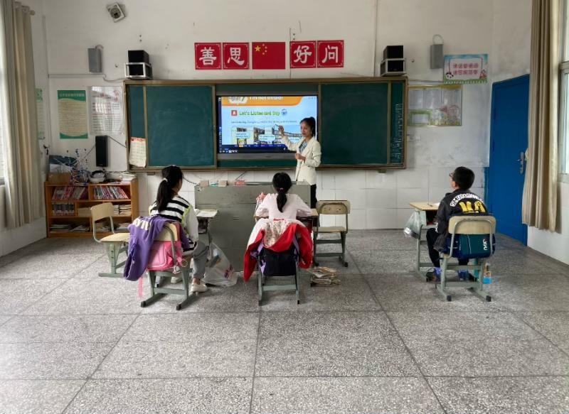 在农裕小学的教室里,多媒体教学大屏就成为标配。在美术、音乐等课上,同学们通过网络可以跟着来自长沙城区的老师同步学习。而课堂之外,“在条件有限的情况下,我们想让孩子们体验一些仪式感,别的孩子有的我们一样有”,孙微这样说。于是,筹备即将到来的儿童节活动,孙微在课间时带着六年级三人组自制将要用到的道具。饶雅雯还透露,她将在活动中独唱歌曲《是你》,并现场清唱了一段给孙微和同学听。