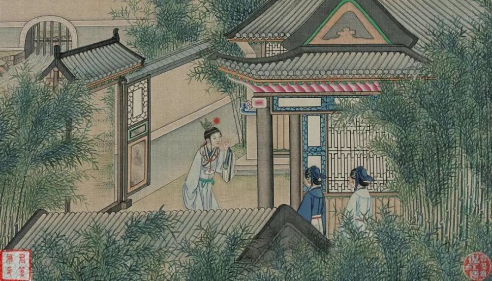 当日薛宝钗在滴翠亭外听说小红与坠儿的谈话,之前就是见贾宝玉进了潇湘馆,担心撞见尴尬的画面而回避了。