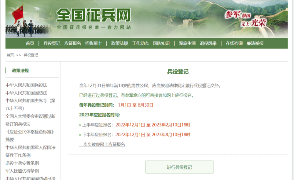 (5)往年已参加兵役登记的,可登录“全国征兵网”对个人登记信息进行核验并申请今年应征报名。