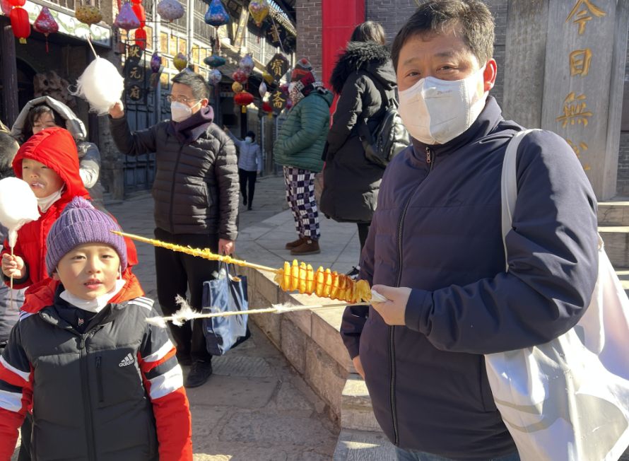 今天大年初三,偏低的气温,丝毫没有影响人们游玩的兴致,周村古商城依旧上演着热热闹闹的“民俗过大年”。在古商城过年,已不再是单纯的看建筑、逛景点,参与、互动、拍照、美食……沉浸式的游玩体验成为逛古城的特色。随机采访了几位到景区“凑热闹”的游客,看他们怎么说: