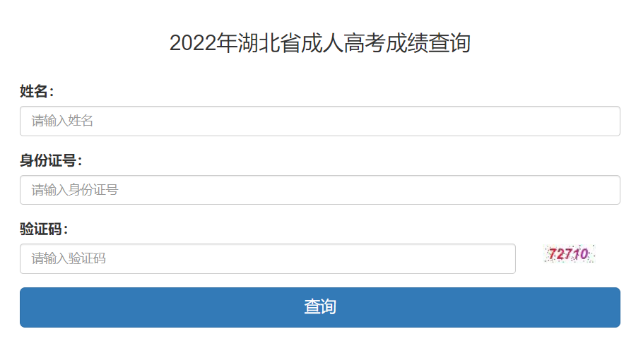查询方法:点击网址输入本人身份证号和页面提示的验证码,即可查询2022成人高考考试成绩。