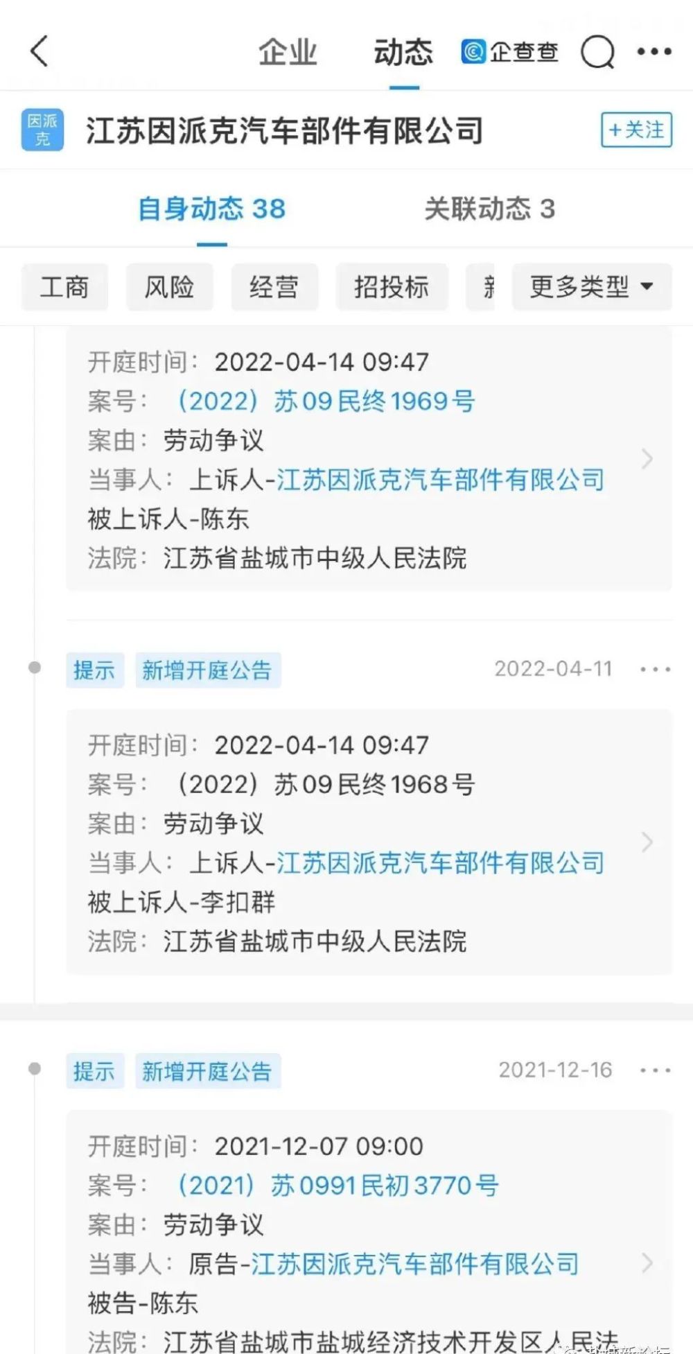 从该工厂企业后台看到,该公司之前和工厂之间一直存在着劳动纠纷案件,并且闹上了法庭,希望开发区派克汽车部件公司早日足额支付该同学工资,对于其违规用工问题,希望也引起开发区劳动部门的重视!