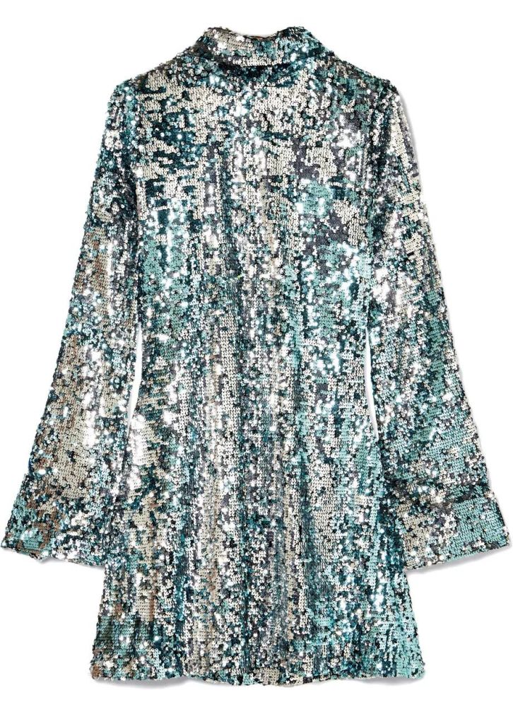 Norma Kamali 的银色亮片吊带或是 Halpern 冰蓝色与银色相间变幻的亮片礼服裙,再套上一条 The Row白色legging 打底裤,冰雪女王就是你。