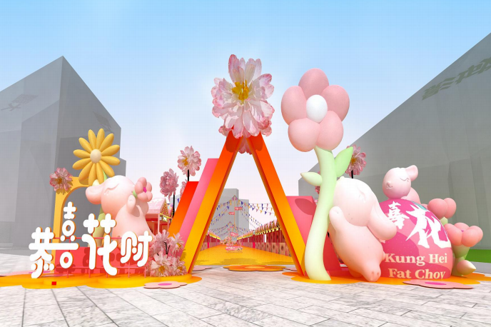 2023年佛山新城迎春花市效果图,这是佛山新城首次举办迎春花市。