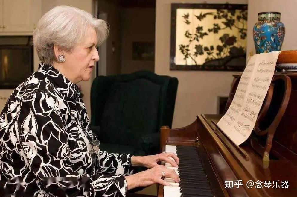 老年人退休后如果再没有自己的兴趣爱好,很容易陷入抑郁的精神状态。钢琴弹奏会调动全身的动作,且投入练琴状态后时间会过得很快,会使老年人感到充实有意义。因此,只要家里的老人对钢琴有兴趣,完全可以尝试,在人生的中后期也能有意义地度过。
