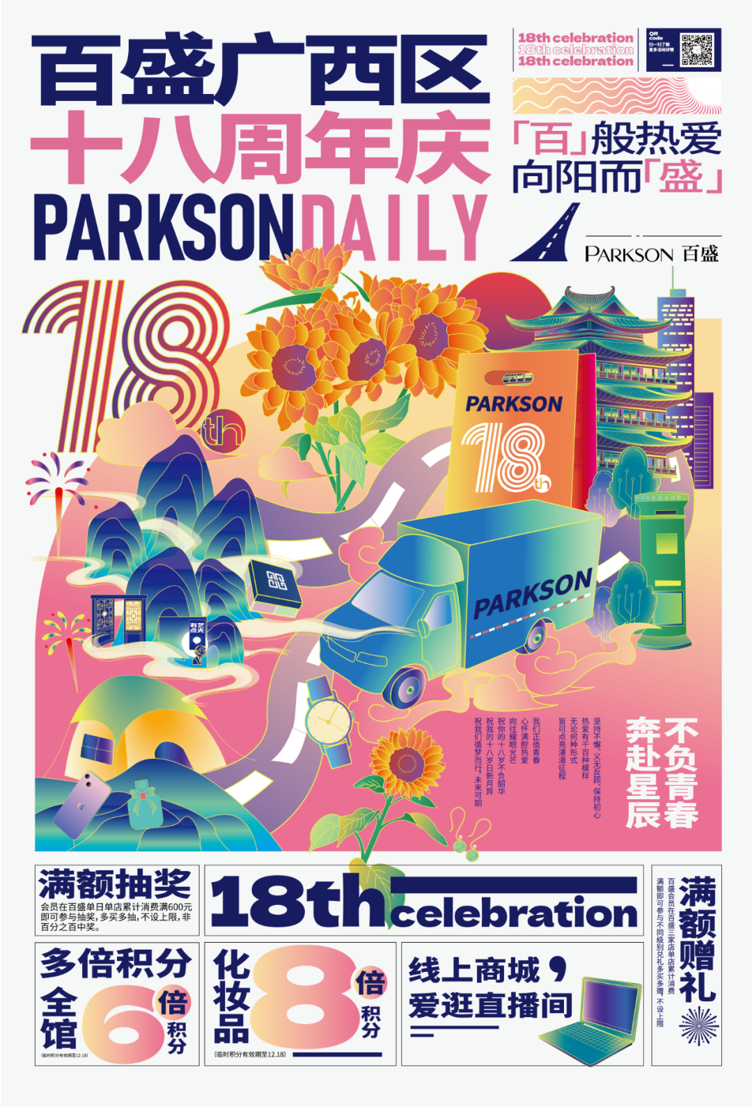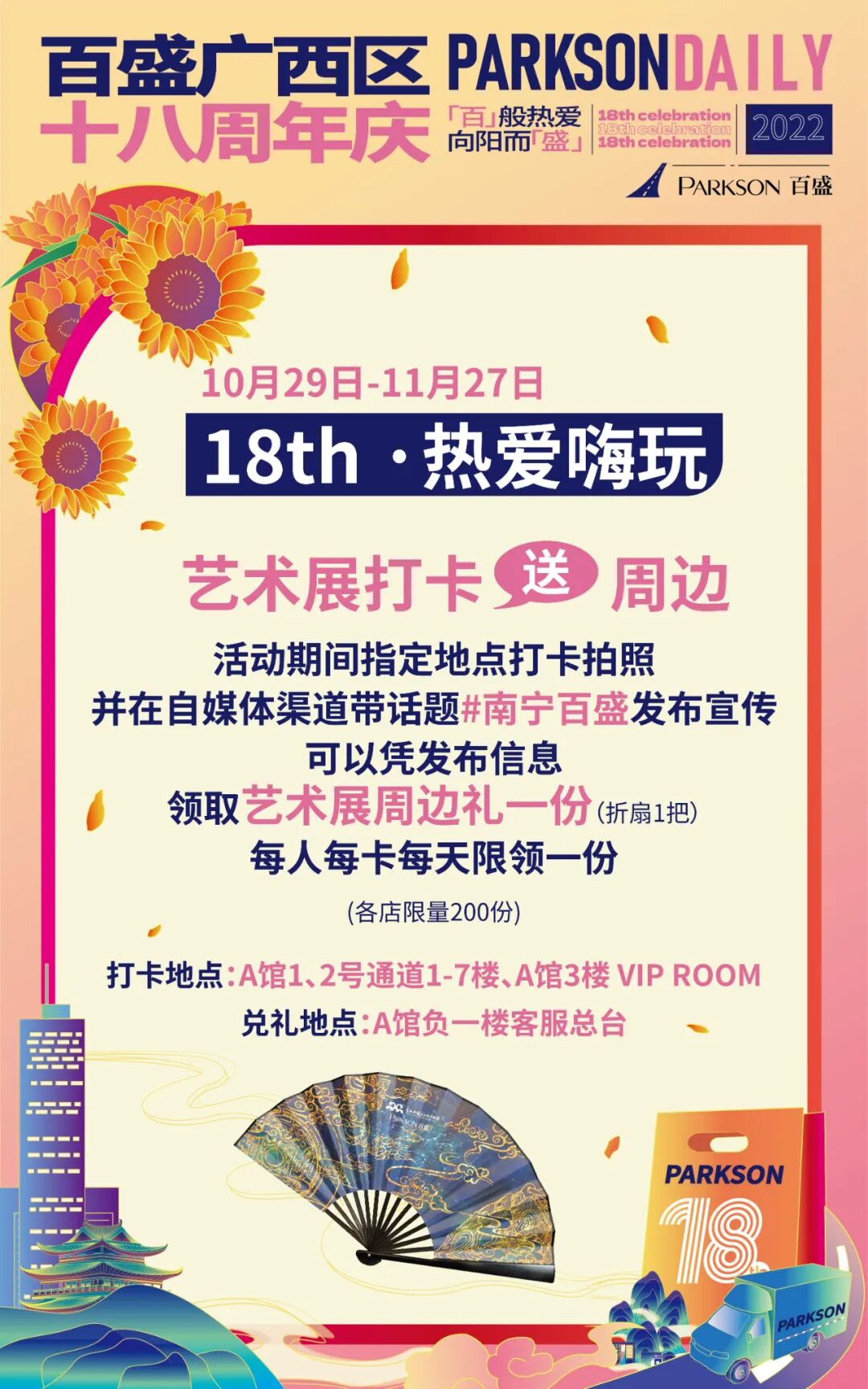 18年,陪伴无数南宁人度过美好时光未来,百盛商场也依旧会为每一位南宁人用心服务心怀满腔热爱,保持初心创造更多美好回忆!百盛18周年生日趴倒计时!N+折扣狂欢多倍积分、满额赠礼、满额抽奖全场超多福利等你来!更有热爱嗨玩狂欢趴等你加入小伙伴们千万别错过!