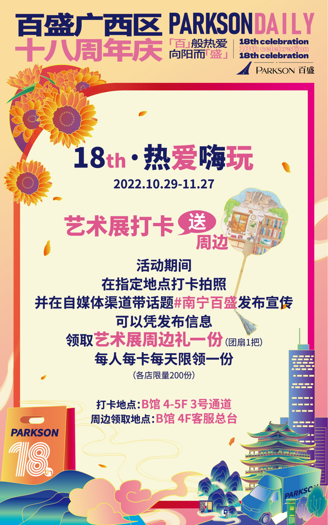 除了购物折扣福利,还有超多周年庆精彩活动等着你!店庆巡游、十八周年庆生日派对、打卡送周边......一同见证18周年庆“热爱嗨玩”派对!