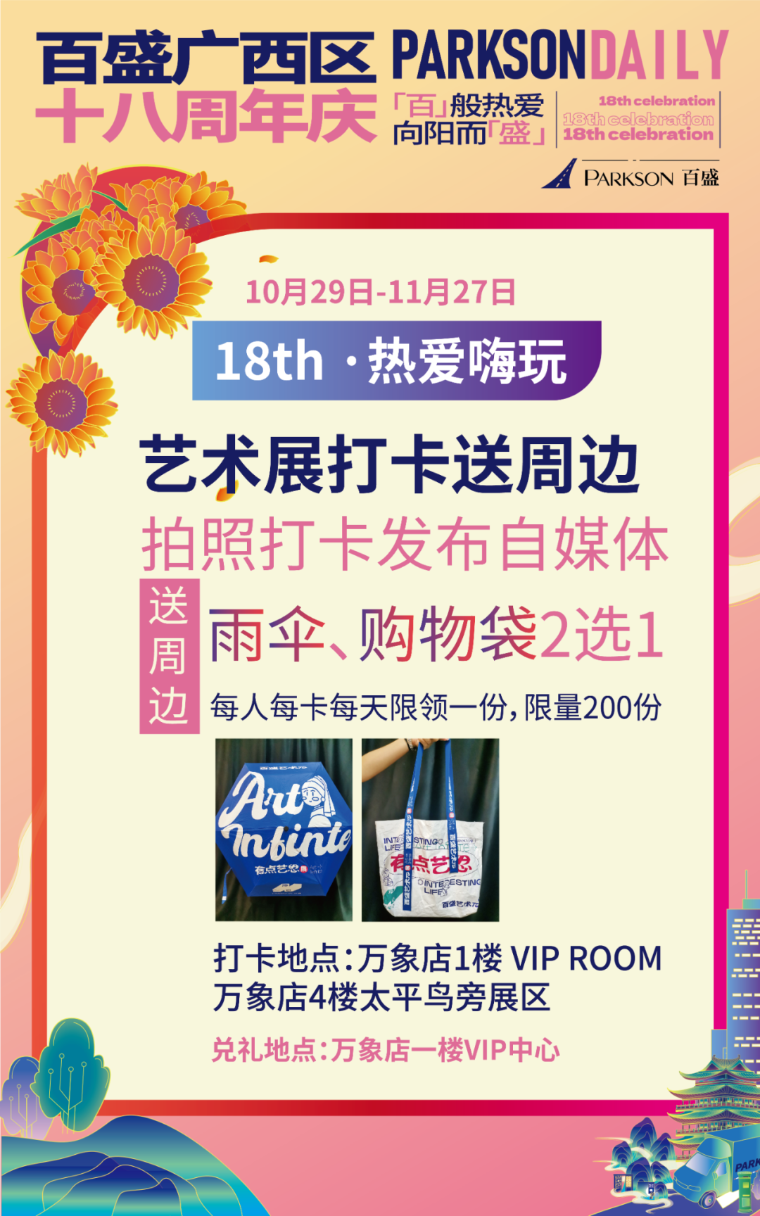 小伙伴们注意啦!这次18周年生日派对,还有生日大蛋糕等你一起分享!记得来一起感受百盛热爱生活,向阳而[盛]的态度~