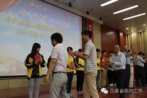而今天为18岁的临川二中学子举行成人仪式则是为了迎接高考,更好的发挥高三学子在学习,工作,生活中的先锋作用,冲刺高考,圆青春梦,勇敢担当起一个公民应尽的责任,努力争当“四个新一代”(即理想远大、信念坚定的新一代,品德高尚、意志顽强的新一代,视野开阔、知识丰富的新一代,开拓进取,艰苦创业的新一代),成为社会主义核心价值观与中国梦的践行者,成为中国特色社会主义事业的合格建设者和可靠接班人,成为推动党和国家事业的生力军。
