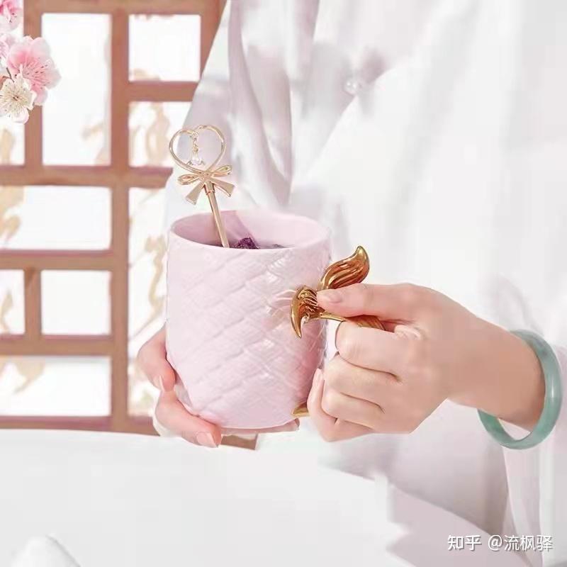 手绘鎏金杯柄,灵动的鱼尾设计,糖果小清新色系,满满的少女心!拿在手里手感温润,防烫防滑,仿佛映入大海中的温柔明月之影!内外壁表面均以透亮釉层作保护膜,表面光滑易冲洗!