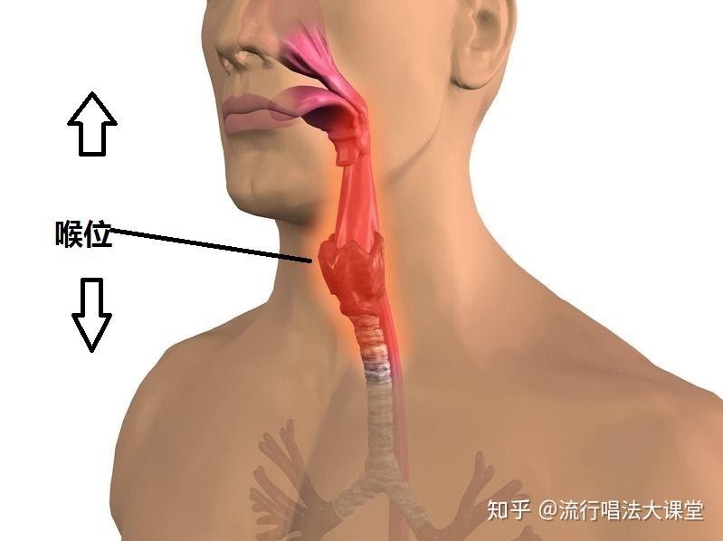 前后方向: 依照图示,我们面朝前,常说的声带的前端即我们面朝的方向,后端即背后的方向。我们给这两个方向来下定义,主要是为了区分感受而约定俗成的东西。 喉位方向: 喉位主要是上下运动,对于流行的科学发声来说:相对喉位稳定,喉结上部肌肉不过度紧张即可。当然,有高要求的可以尝试降低喉位(非压喉)来进行声道距离拓展(你可以理解为把喉结到嘴巴的距离拉长或者拉长脖子,哈哈哈哈哈哈哈哈)
