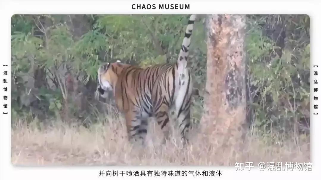 面对面社交会给虎造成极大的压力,所以它们主要通过气味进行交流。每隔两三周,一只老虎就会巡逻一次自己庞大的领地,并向树干喷洒具有独特味道的气体和液体(Scent marking)。如果有一只老虎犯懒忘了这样做,邻居们就会以为它挂了,纷纷前来收割遗产。