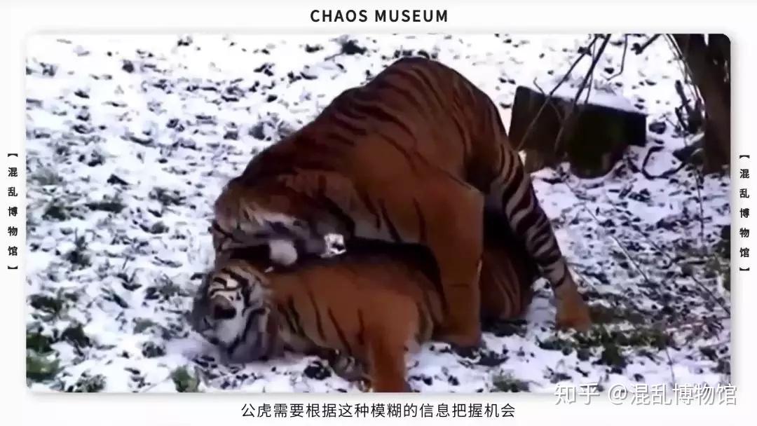 老虎的交配过程也充满了暴力。前戏是母老虎撕咬殴打公老虎。母老虎揍得爽了,才会俯身做出诱惑的姿势,在不可言说几秒钟后,立即翻脸把对方打出领地。