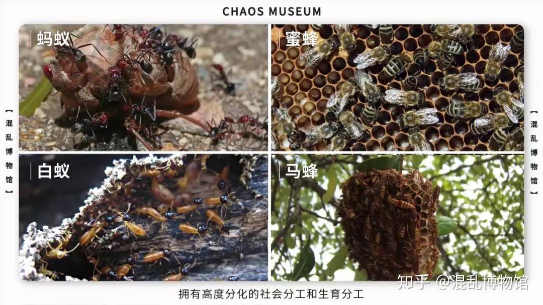以蚂蚁、蜜蜂、马蜂和白蚁等等为代表的真社会性动物(Eusocial),拥有高度分化的社会分工和生育分工。一部分是雄性,被用来交配,交配结束便魂归西天,一部分是雌性,被抑制了生殖,它们全身心投入工作,不管是996还是007都毫无怨言,一直工作到死,堪称没有灵魂的「机器人」,更加不会对社交产生任何抗拒感,并发自内心地热爱挤成一团,嘤嘤作响。