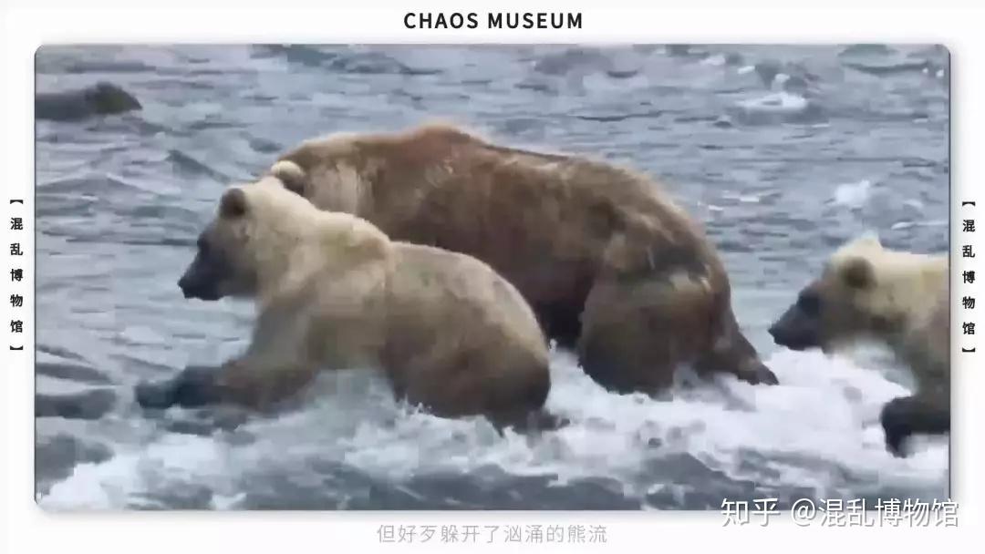 可想而知母棕熊面临的压力。为此她们只能尽量不去热门捕食地,前往更偏远、三文鱼更稀少的地段。虽然食物少了很多,但好歹躲开了汹涌的熊流,保全了孩子的性命。