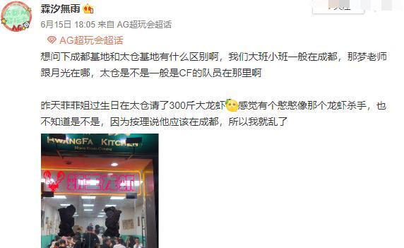 近日菲菲也是度过了自己的生日,又成长了一岁,对于未来,菲菲肯定又有更大的目标。在生日这天,菲菲可是大摆龙虾宴哦,CF分部的人也是晒出了视频,可以看到,足足300斤的龙虾啊,犒劳选手和员工,有这样的老板,AG选手们能不拼吗?