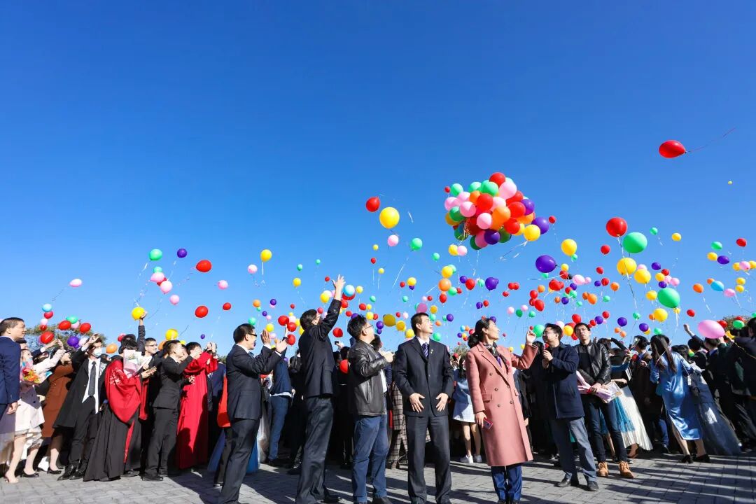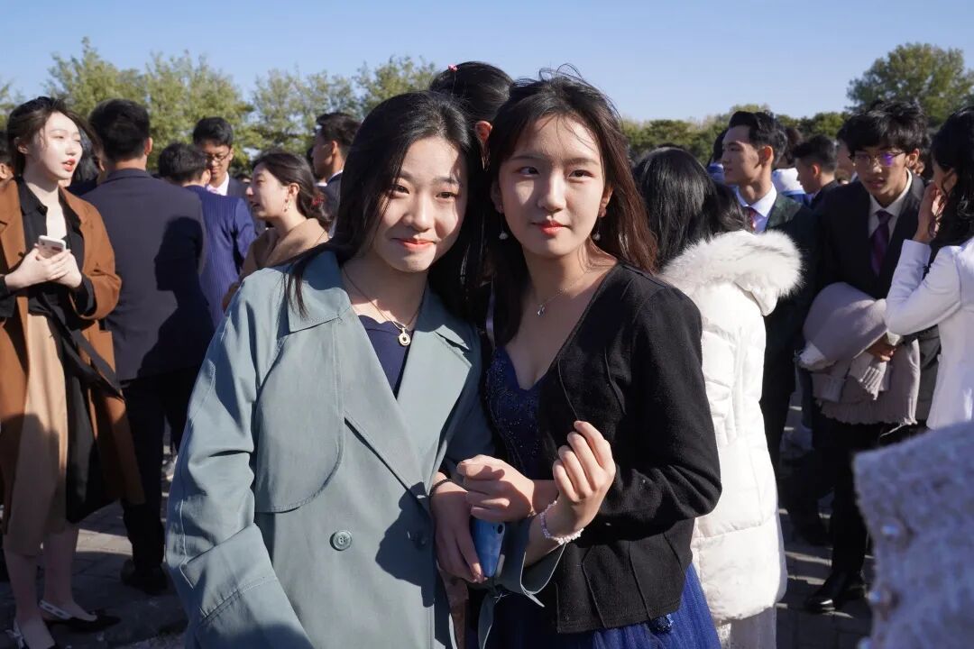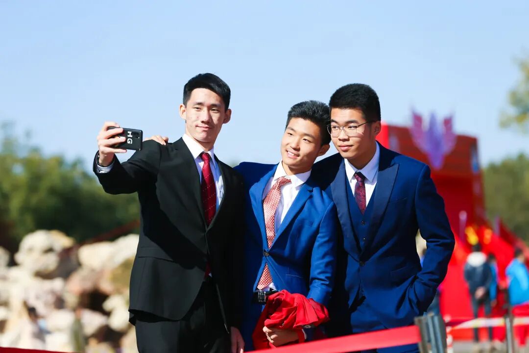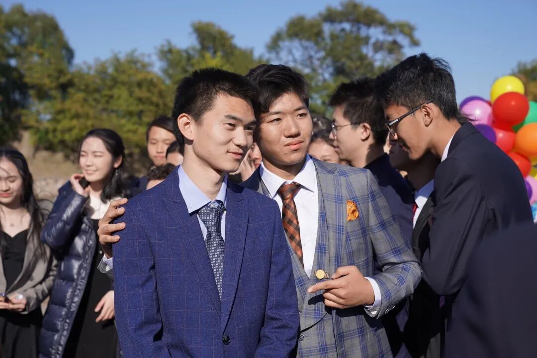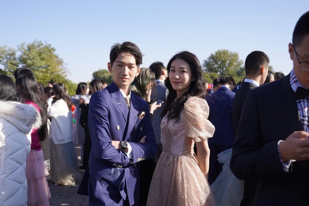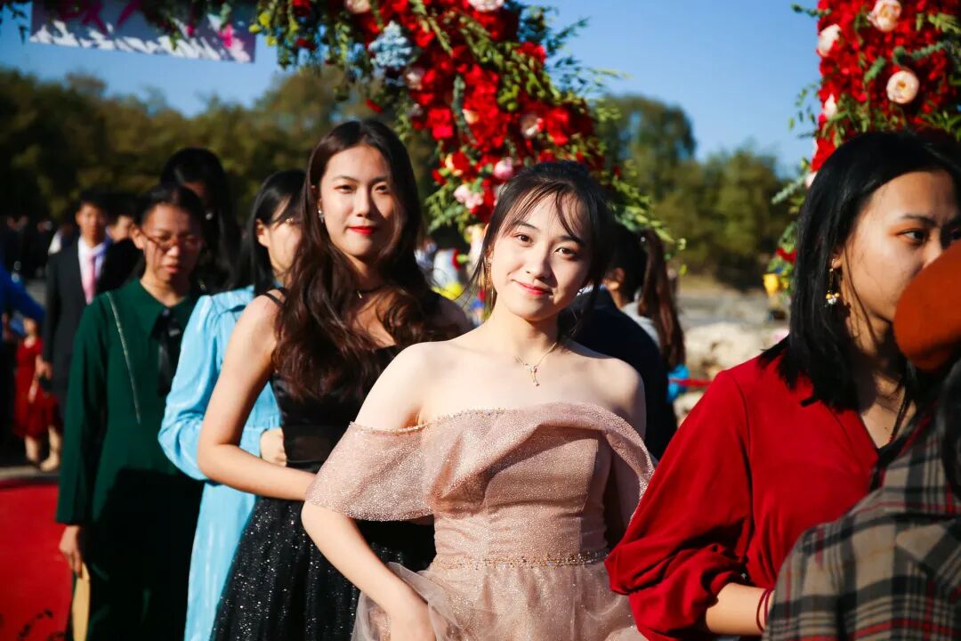 成人礼之后,大家回到喷泉广场,盛装出席主题舞会。伴随着一首首优美的舞曲,师生共同翩翩起舞。