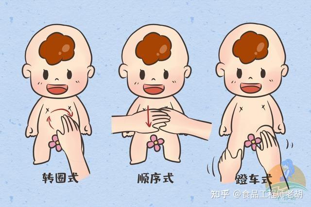 拍嗝宝宝因肠胀气难受哭闹时,宝爸宝妈可轻轻地呈顺时针方向为他按摩小肚子,一方面可以缓解腹胀,另一方面宝宝也会因为舒服而转移注意力。