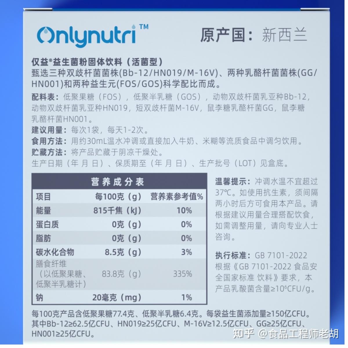 再次,明星菌株,每株都足量添加:Guteam明星级好菌队,菌群级益生菌;每袋益生菌添加量不低于150亿CFU。其中动物双歧杆菌乳亚种Bb-12≥62.5亿CFU;动物双歧杆菌乳亚种HN019≥25亿CFU;短期双歧杆菌M-16V≥12.5亿CFU;鼠李糖乳酪杆菌GG≥25亿CFU;鼠李糖乳酪杆菌HN001≥25亿CFU。