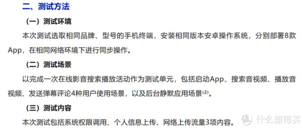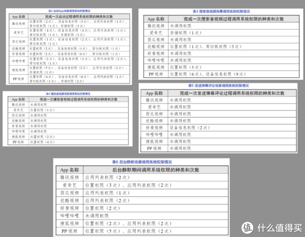他们测试的内容,简单来说就是在APP里进行四项操作:启动、搜索、播放、发弹幕评论。然后统计APP进行了哪些权限调用,个人信息和网络流量使用情况。