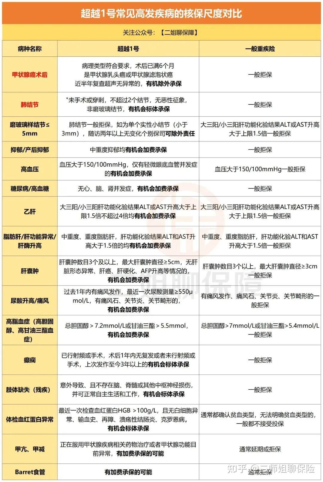就拿投保困难户,甲状腺癌来说,超越1号的核保尺度就特别宽松。