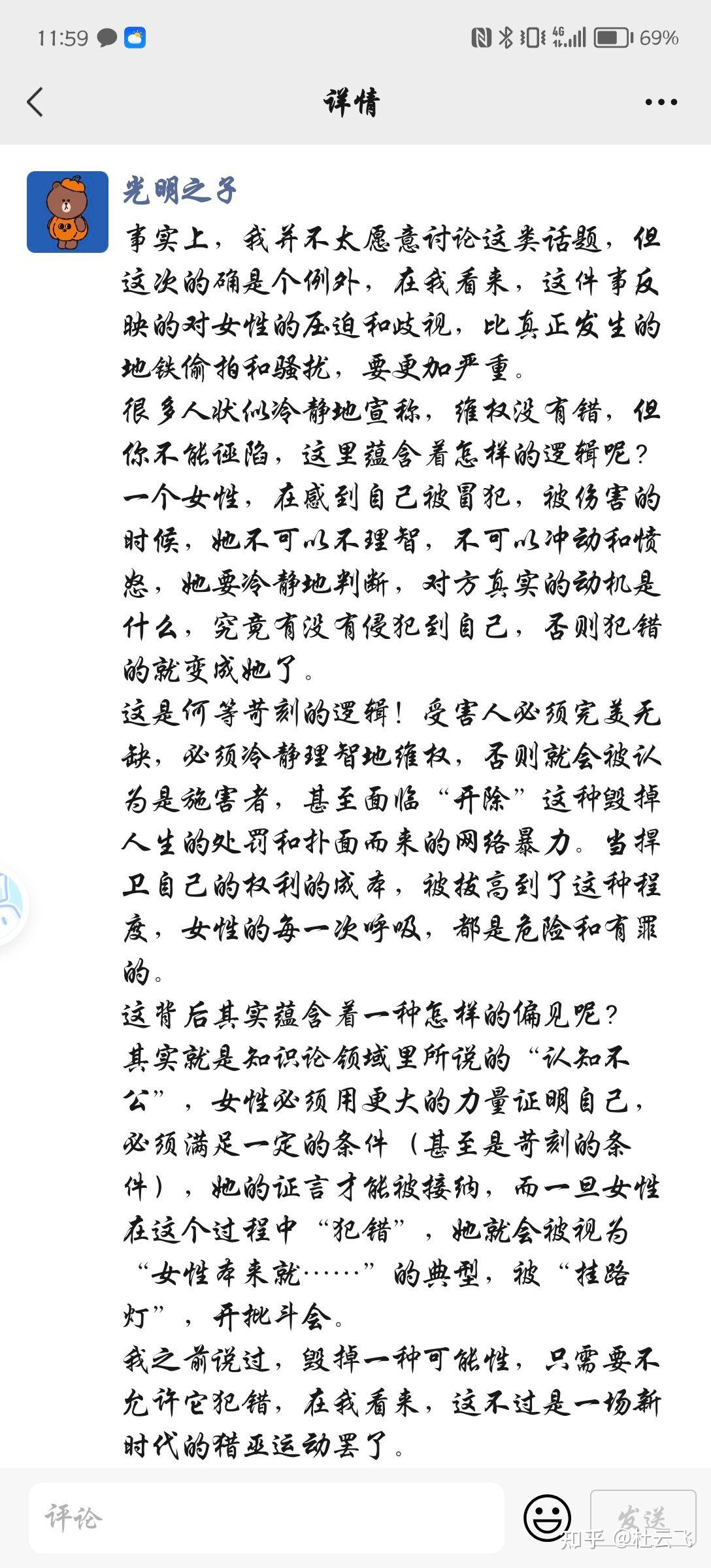 我们没有必要去讨论,作为一个个体,这个女生是一个怎样的人,她当然不是一个完美受害者,甚至在某些人看来,她根本就算不上一个受害者。真正重要的,是这里面蕴含的那些系统性暴力。