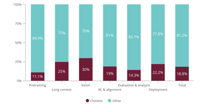 (中国人才是指中国上大学本科,或者由中国内地媒体报道核实。不包括海外华人。来源:OpenAI,未尽研究)
