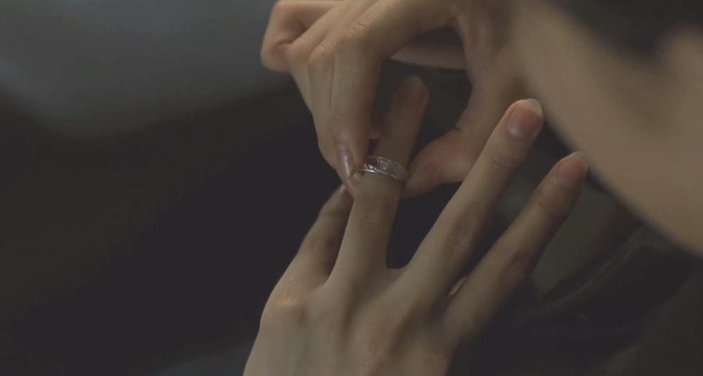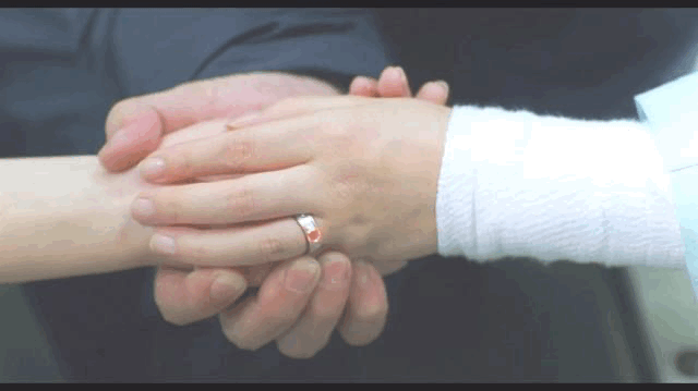 直子流着泪紧握着女儿的手,手中的戒指闪过一道光。