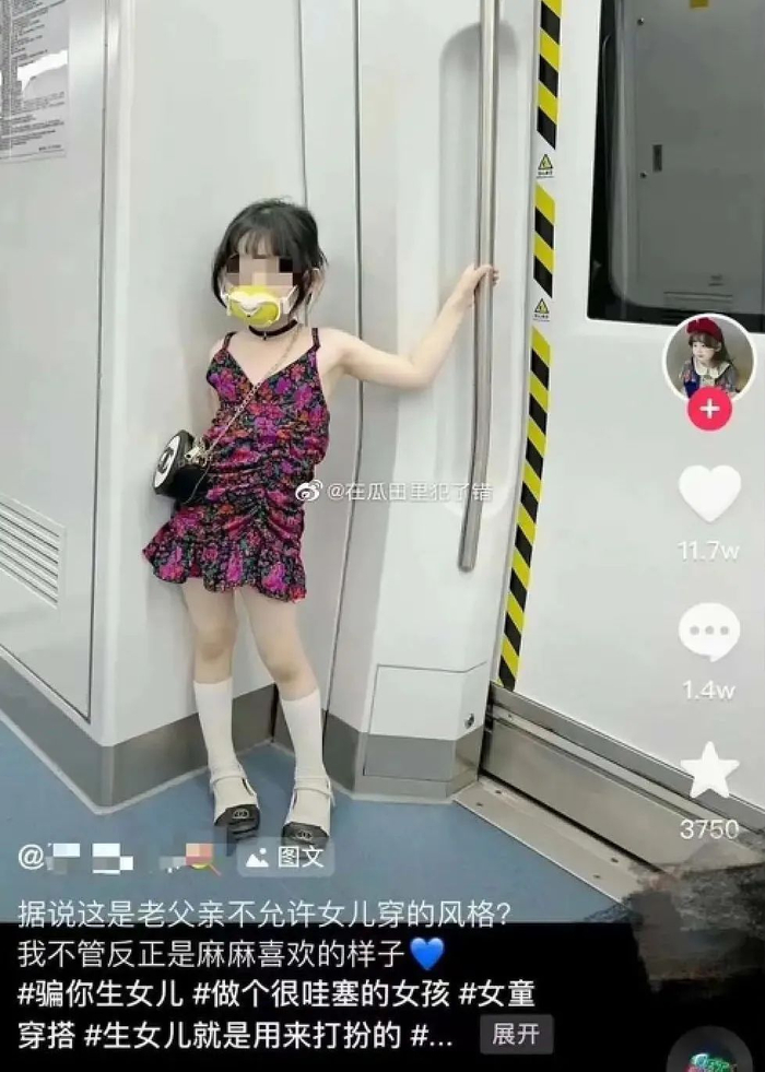 一边又引导小朋友穿成人的衣服、做成人的妆发、摆成人的姿势,美其名曰“穿衣自由”。