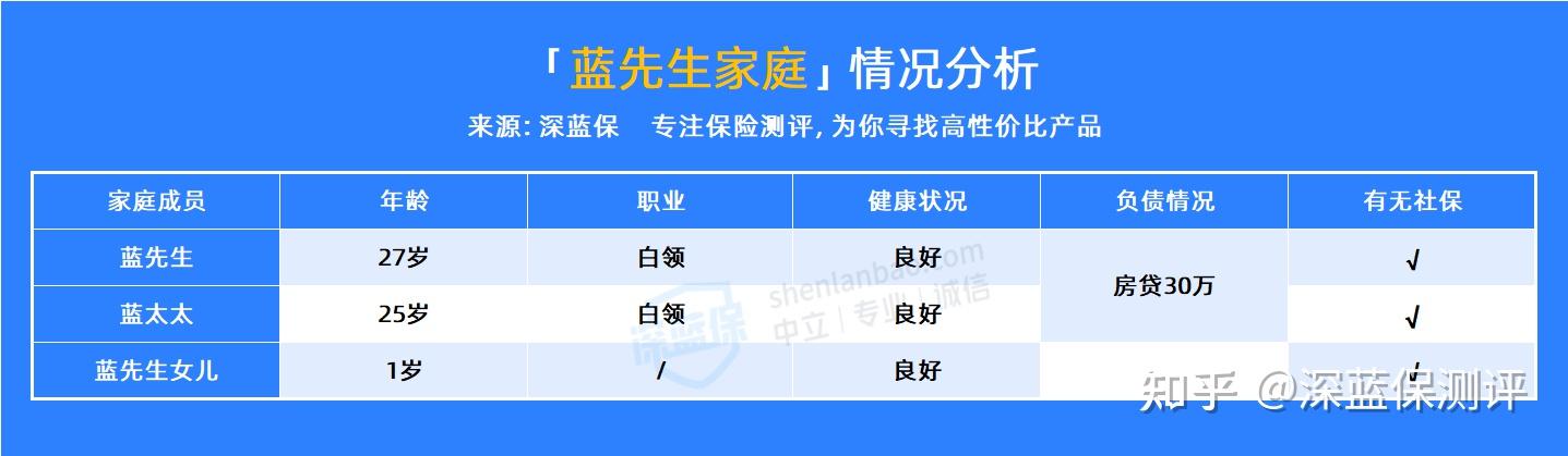 下面深蓝君就以蓝先生的家庭为例,为大家演示一遍如何合理配置家庭保险。