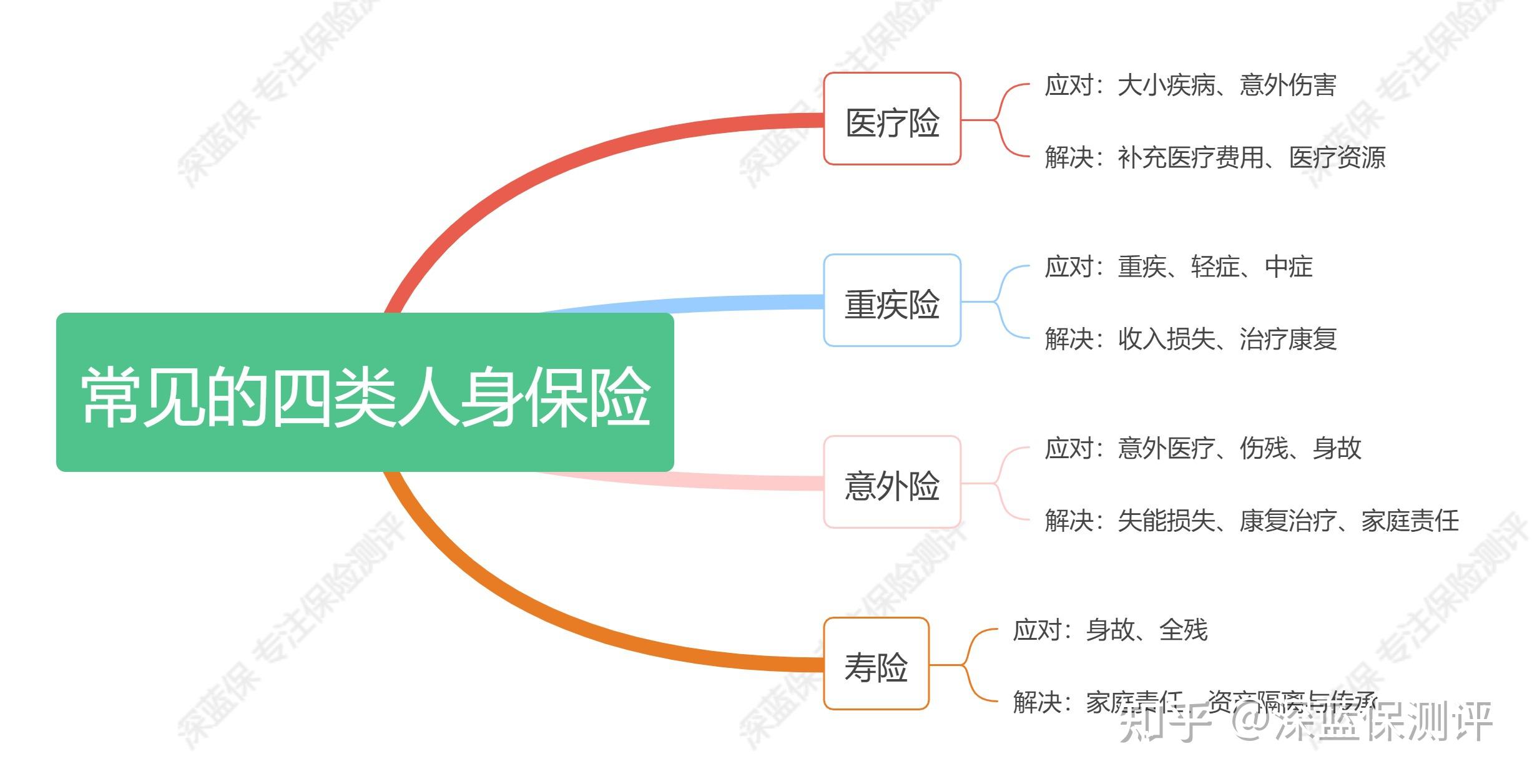 人身险:保的是人的生命或身体,比如重疾险等。财产险:保的是财产以及相关的利益,比如车险等。今天深蓝君主要给大家讲讲与我们日常生活关系更密切的人身保险。