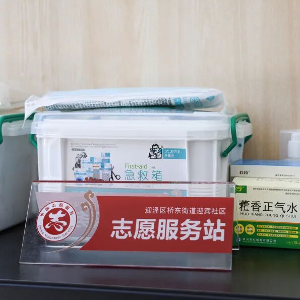 大厅两侧的志愿服务站和清廉家庭照片展览墙,拐角放置的医药箱、雨伞雨衣、老花镜、针线盒以及随处可见的写有文明标语的立牌都在生动讲述着实践站为做好社区服务、营造良好的精神文明氛围而做出的细致努力。