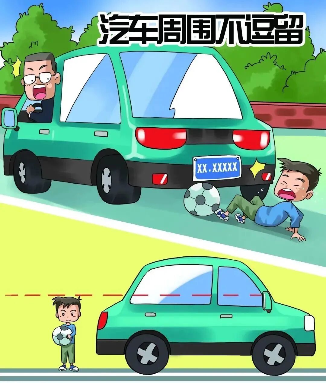 切勿在停车场内打闹、玩耍,更不能在车辆附近逗留。在停车场行走要注意各个方向的来车,多观察周围是否有车辆要发动。