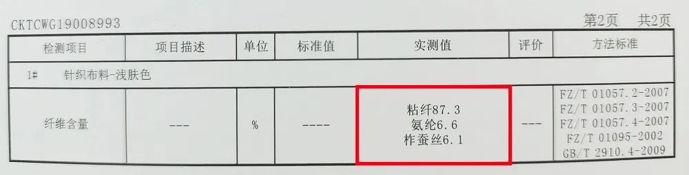 显示真实含有6.1%的蚕丝成分。