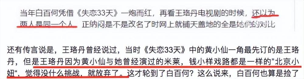 甚至还被爆出王珞丹说,《失恋33天》原本找的是她,但她因为角色和米莱太像,所以拒绝。