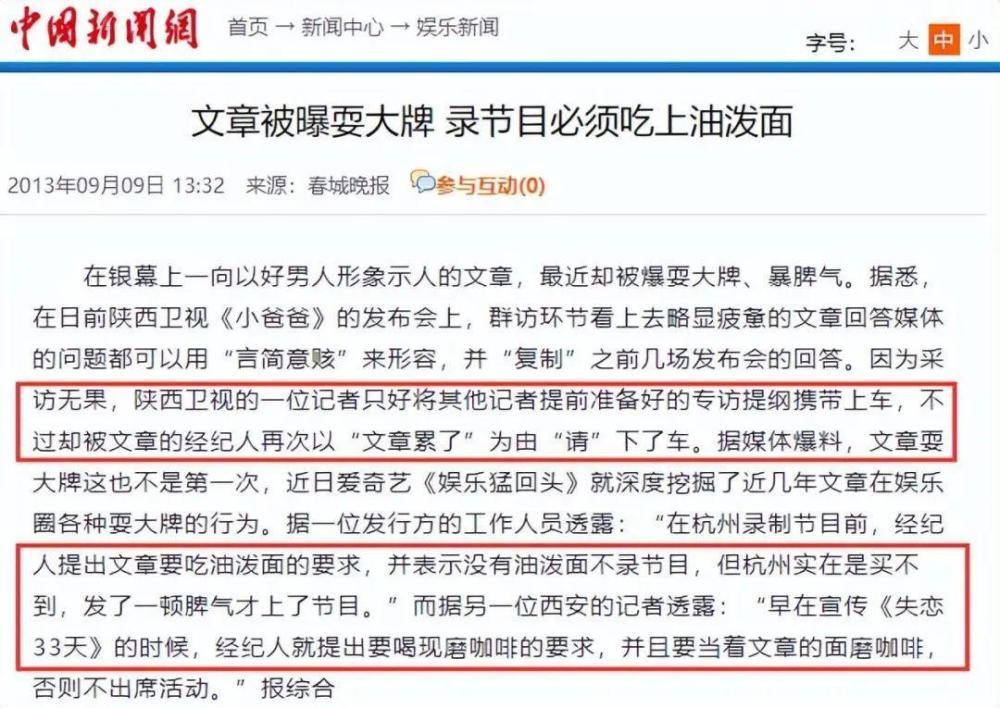 那段时间,文章的形象从爱妻好男人,一下子就变成了“耍大牌,脾气臭”。