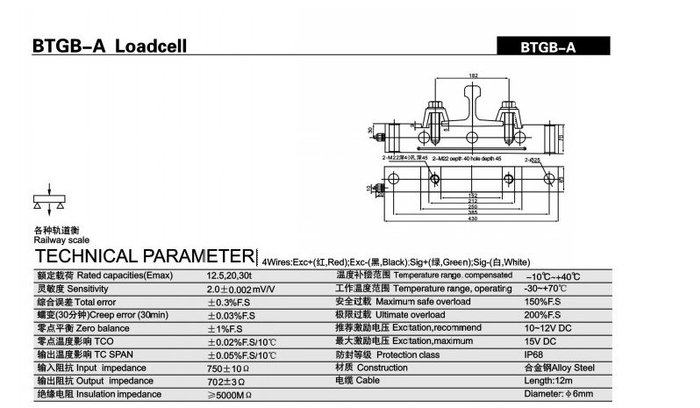 【广州南创电子科技】宁波柯力BTGB-A-12.5t/20t/30t称重传感器技术参数及尺寸图: