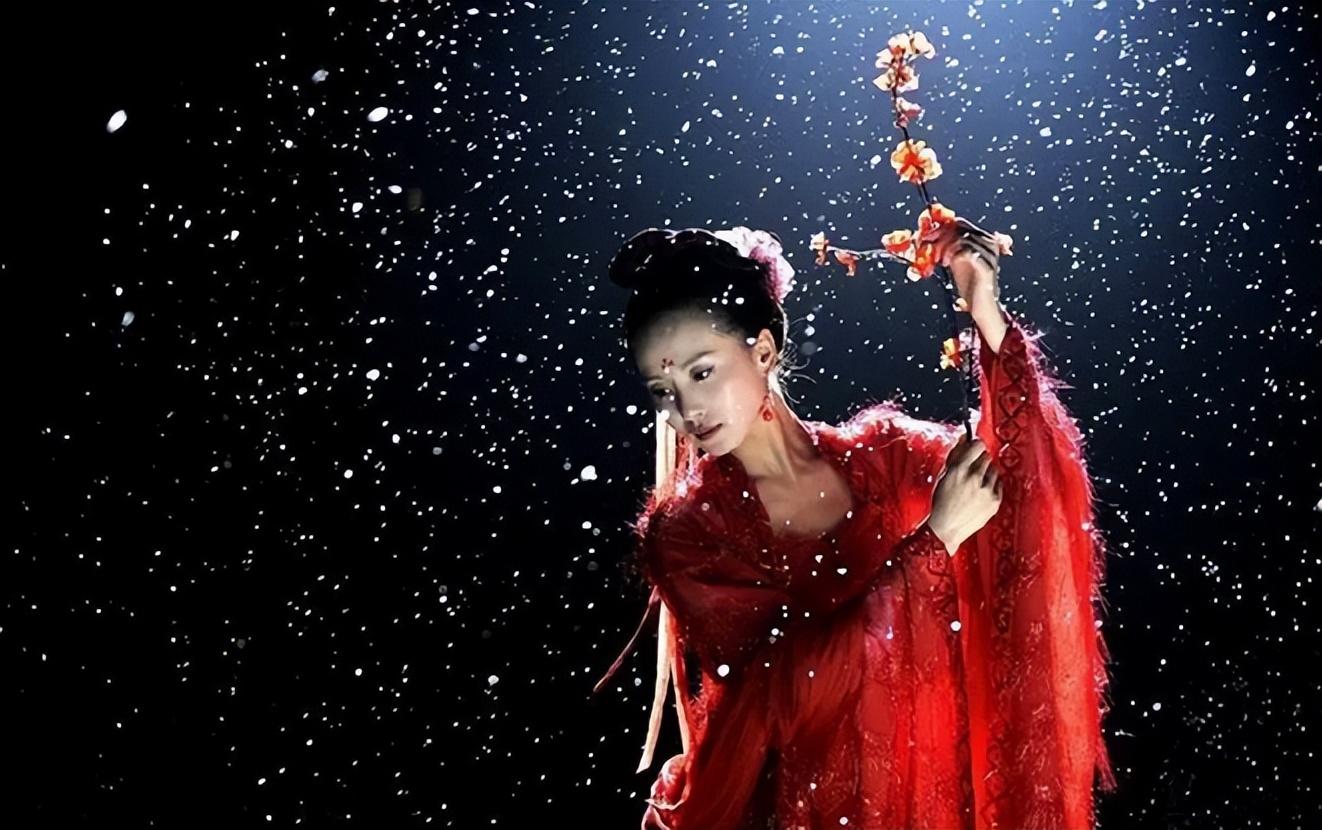 当年在雪地中的她,一袭红衣翩翩起舞。