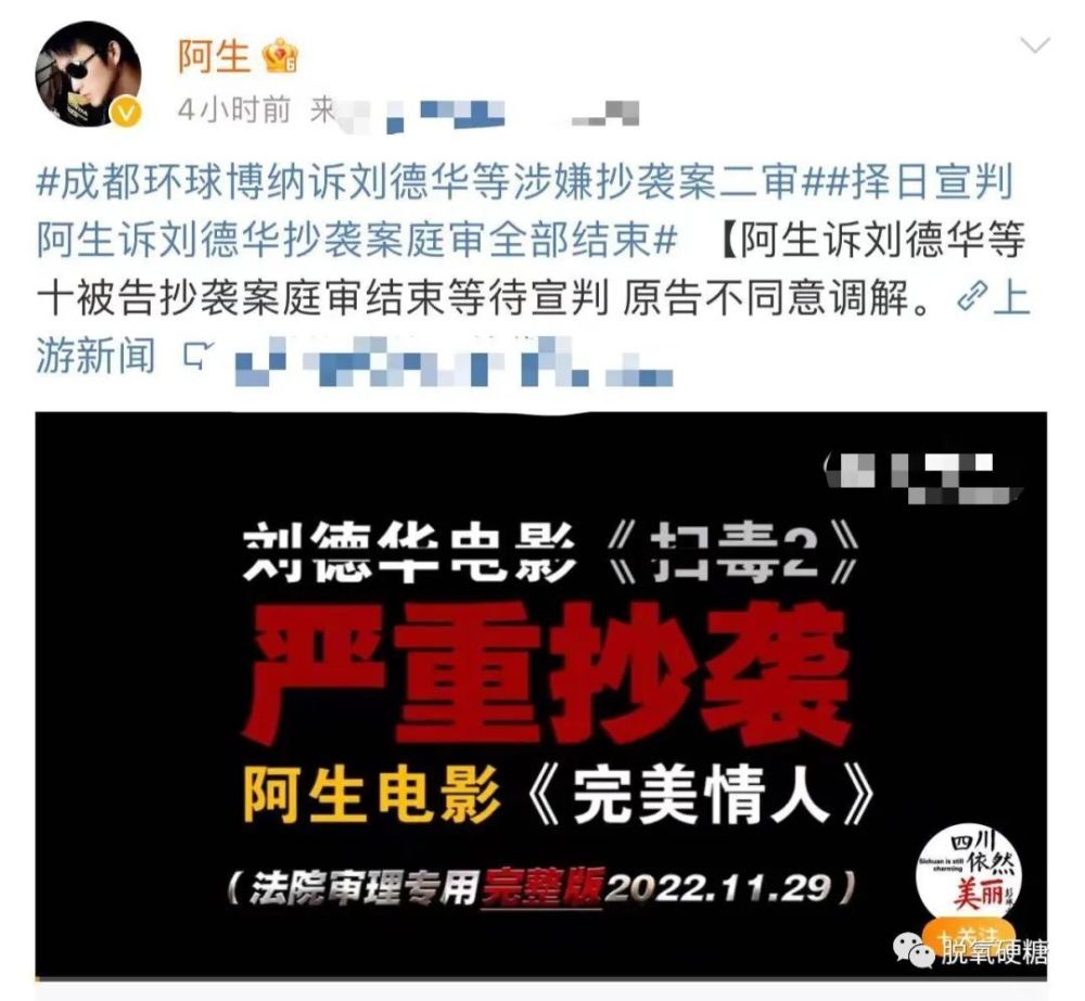 但是,阿生一口咬定刘德华方抄袭了自己的电影。