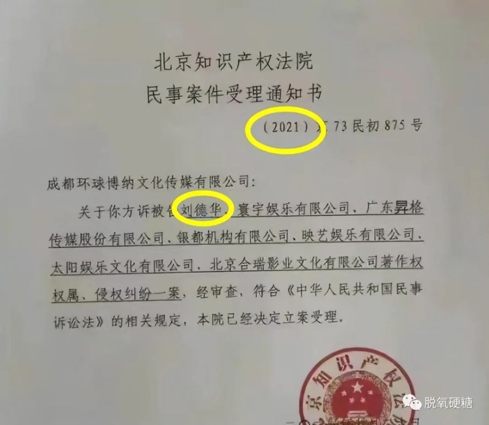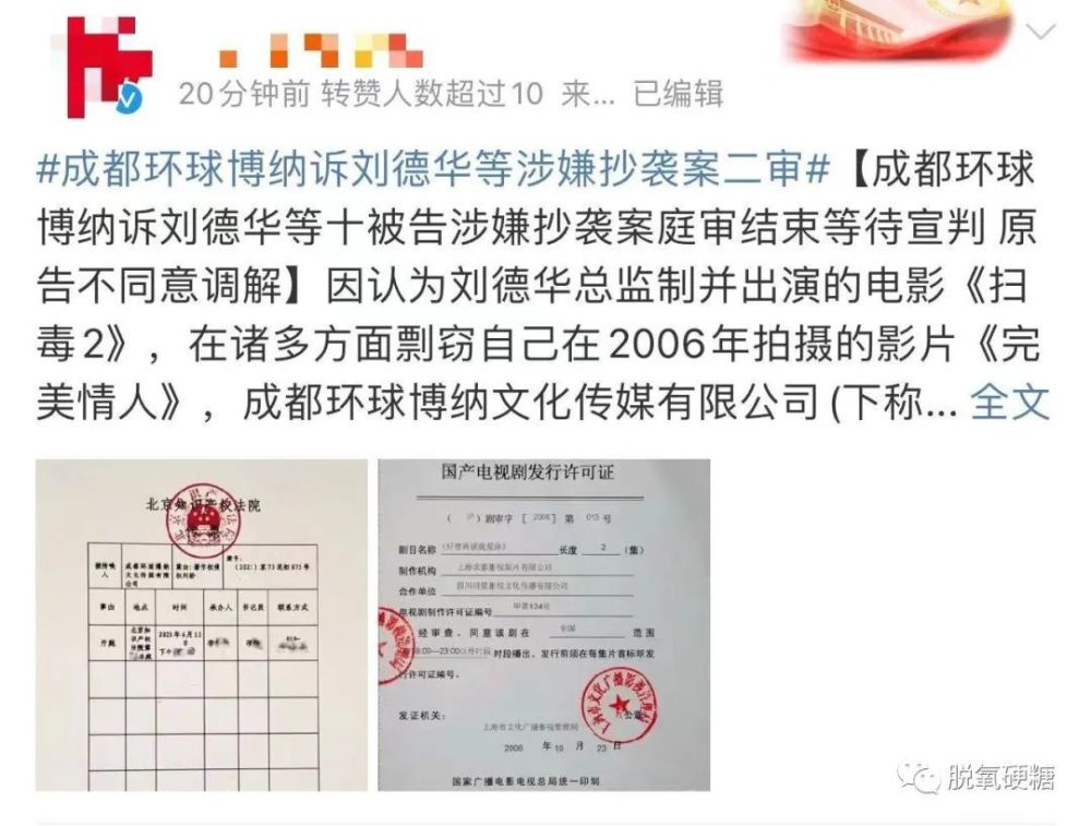 所以,《完美情人》的出品方和发行公司成都环球博纳文化传媒有限公司一起把刘德华、《扫毒2》出品方以及三名编剧等十个人,都给告上了法庭。