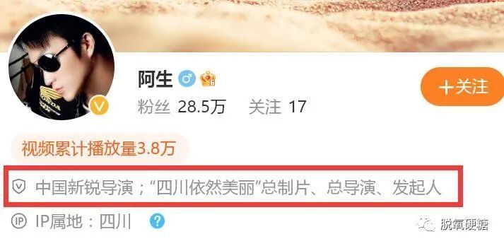 虽然这位阿生在业内不太著名,不过他给自己的微博可是冠上了不少title。