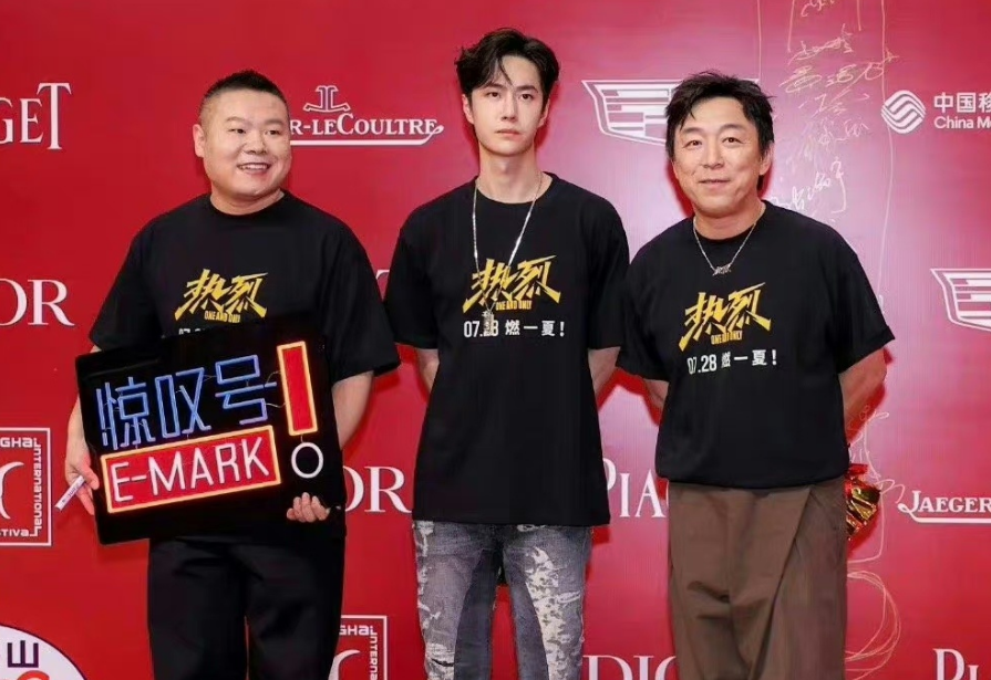到了《热烈》剧组,他又跟着整个剧组换上了写着电影名的黑色T恤,同剧组的王一博瘦了,颜值也重回巅峰,整个人看起来阳光又时尚。